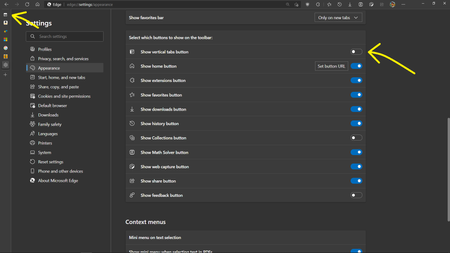 When the "Show vertical tabs button" option is disabled, shouldn't the button also disappear from the vertical bar?