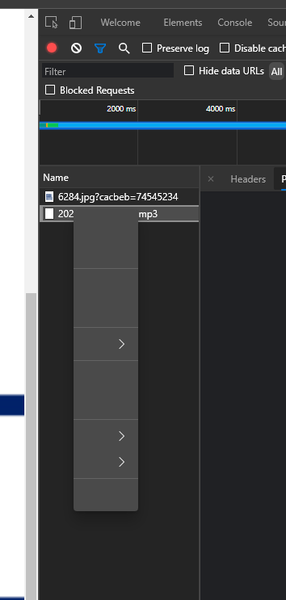 Version: Version 90.0.803.0 (Official build) dev (64-bit) Platform: Windows 10 Pro 19041 x64 When Developer Tools is open in side docked mode, under Network, right clicking on a Network Item sho...