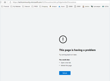 Keith Davis, thanks for reporting the issue! It looks the crash is due to a regression from Blink and a fix should be available in tomorrow's Edge Canary build. Please let us know if you still run into the same crash issue after updating Canary tomorrow.