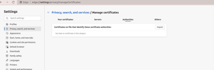 Hey Everyone , i try to upload a certificate from edge://settings/privacy/manageCertificates but nothing show up when i click on Import like nothing happend