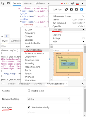 So I will change the UserAgent to match my Firefox browser. However, the UI for the DevTools has changed for beta Edge, and I can't figure out how to change the UserAgent.