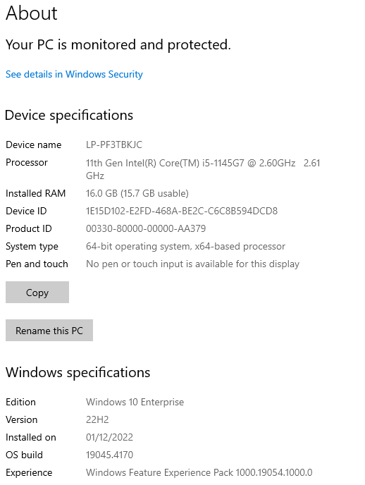 The Windows 11 machine where the issue does not happen.