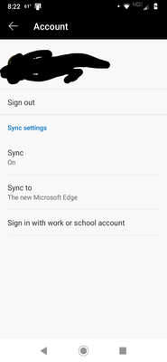 On Android (Samsung Galaxy S7 edge running Android version 7.0), on the phone, I go to settings>cloud and accounts (no accounts tab)>accounts>edge (it shows the new logo, and I seem to remember selecting the new edge for it when I installed it on all devices). This is also synced to the same outlook account.