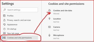 Cookies and site permissions
