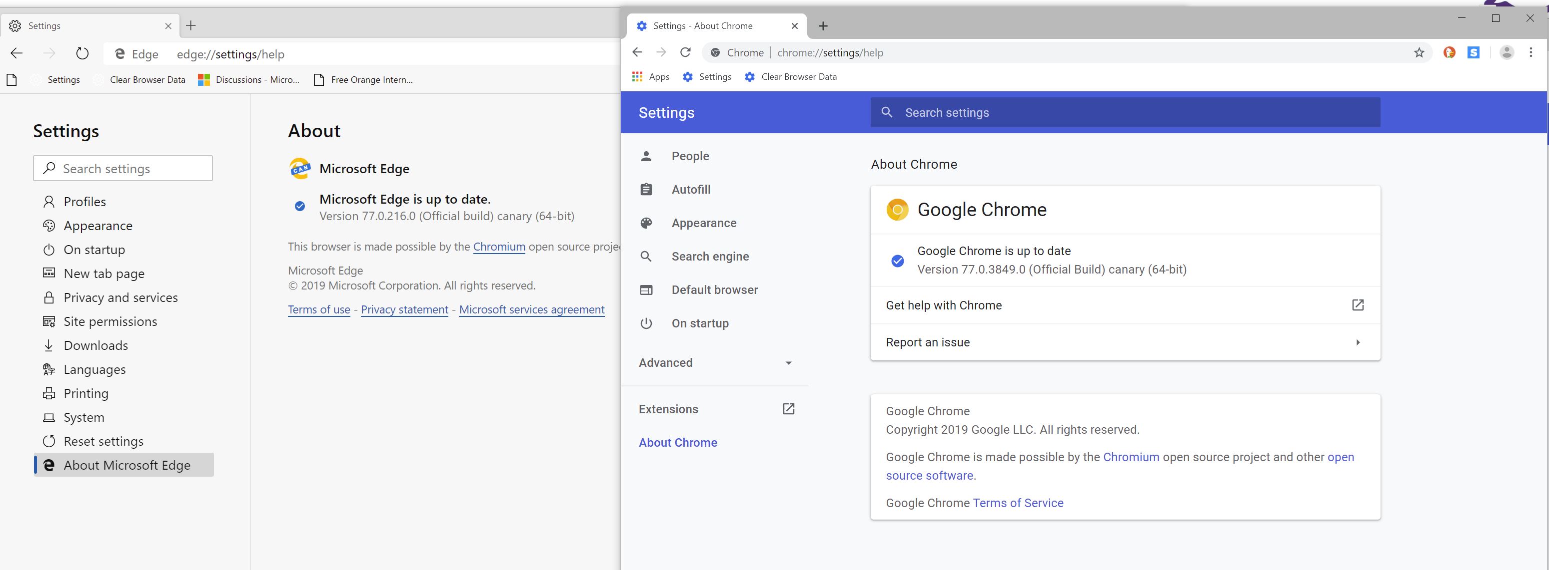 Dark Mode Comparison: Edge Canary (77.0.216.0) vs Chrome Canary (77.0.3849.0). Who wins out?