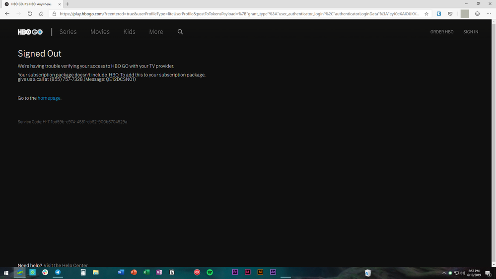 - HBO GO URL redirects to evergent.com