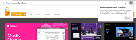 I'm currently using the Beta version of Edge and have "Developer mode" toggled on. I recently installed an extension from outside the store (a pretty safe one that masks sensitive info in the Azure ...