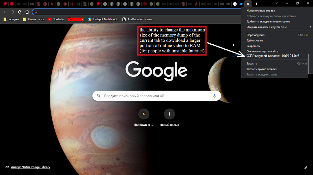 додайте функцію збільшення кешу озу вкладки для перегляду потокового відео з повільним інтернетом (навмисне кешування всього великого відео файлу в озу при простої вкладки)
