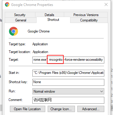 For example, I want click Edge dev shortcuts to open a incognito window. what should I do? chrome can set a Starting Parameter. such as: