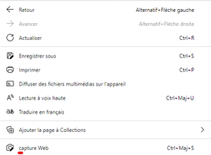 In Edge 89.0.774.50, seems like two little mistakes are present in the french translation : 1) When right-clicking, the "C" in "Capture Web" in the context menu should be an uppercase (also wrong...