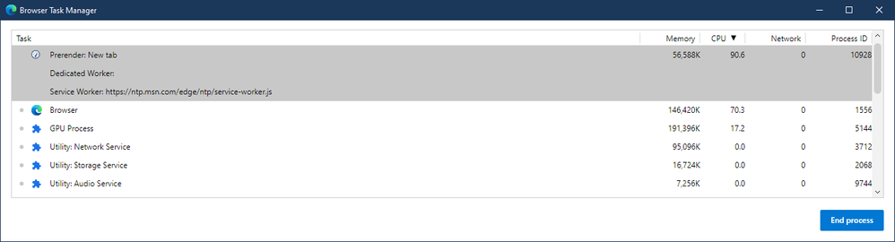 edit: tried the above idea of disabling the preload new tab experience....did nothing, the service is still going nuts at times
