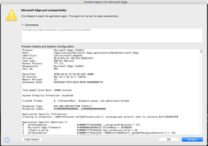 Microsoft Edge on MacOS Sierra 10.12.3 Crashes on Account Sign-in