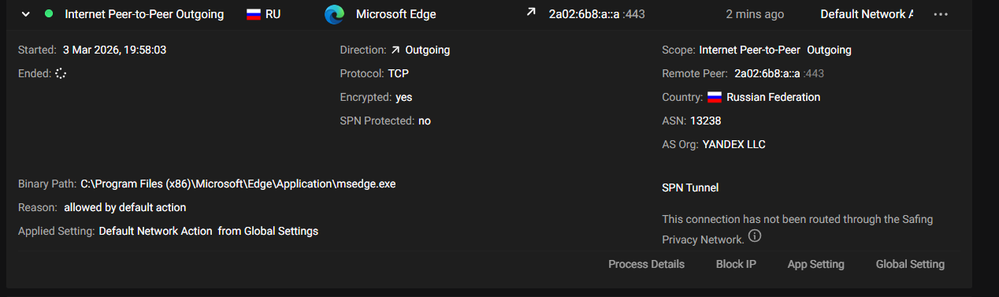 Just wondering why in this current climate my Edge Browser would need to connect to Russia...?