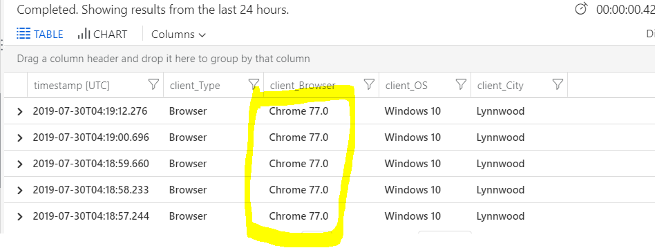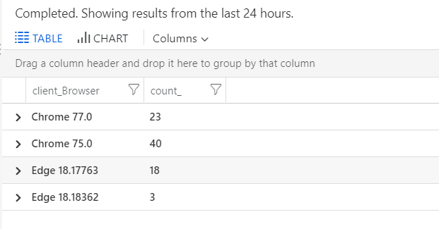 Can your team submit a feature request or a bug to Azure portal ? The New Edge is required to be in the client_browser column. 🙂