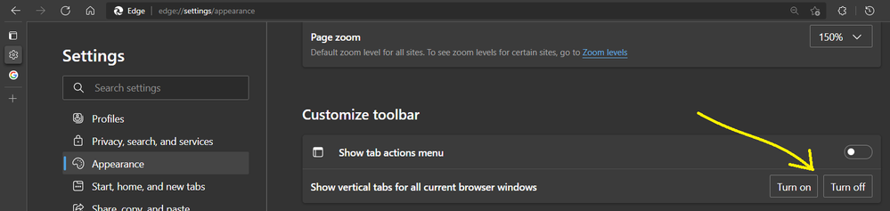 it is now possible to enable or disable the vertical tabs even if "Show tab actions menu" is disabled