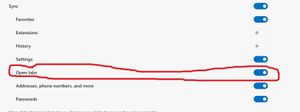 I'm was on 78.0.259.0 than had the 78.0.261.0 update, and I have the new open tabs option in sync. Although I don't use sync (why it shows as turned off in my picture) because sometimes others use my computer. I turned it on for a moment and it worked.