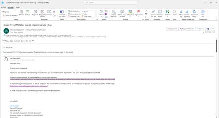 No se despliega el menu de opciones de impresion desde edge