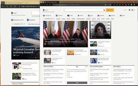 Oh, geez, you had to ask, eh, mate? Traditionally, there has been concern about using a lot of browser space. ie, Don't show Favs bar because it takes up "viewing area", etc, etc. But, one can, certainly, scroll down a page, no biggie. And, Folks visually challenged will like the Edge C version. As for "like more?", I'll have to say the Edge C. There's something about it that's almost hard to articulate... it's somehow 'comfortable', easy on the eyes or it's psychological, but, it's pleasant & relaxing to use. I think being big, 'bright', spacious & 'airy' is subconsciously making using it enjoyable. I'm sounding 'dramatic', but, I think the effect or result is, actually, real, even, though one may not realize it's happening; it's not something one stops & analyzes purposely. Short answer, the Edge C way. (not to be confused with the St. Lawrence Seaway). The magnitude of different varies depending on site, but, even when less, still, visible. Edge on left, Edge C on the right... Starts with the top bars being wider/taller.
