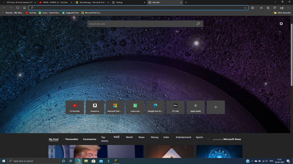 The Lower bar of the NTP gets disoriented when a custom photo is set as background. I am on Edge Canary version 83.0.474.0