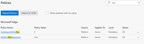"HideFirstRunExperience"=dword:00000001This is not yet in Dev or Beta so I'm assuming its not going to make it in time for the first release but hopefully will make it to v81.