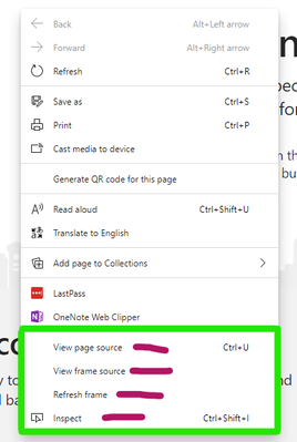Even for web developers, I think "View frame source" and "Refresh frame" are often redundant, because they always appear in the menu, regardless of whether the page even has a frame. It would be nice if Edge checked this and only showed these options when needed. Firefox already does this.