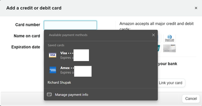 Ever since I opted in one of my saved credit cards to use virtual card numbers, Edge does not offer in as a credit card available to use.