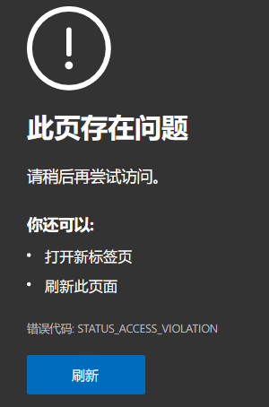 STATUS_ACCESS_VIOLATION error in Edge 105.0.1308.0 canary.