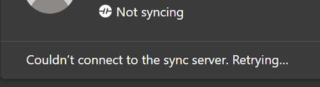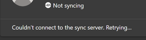 Sync Not Working - Couldn't connect to the sync server. Retrying...