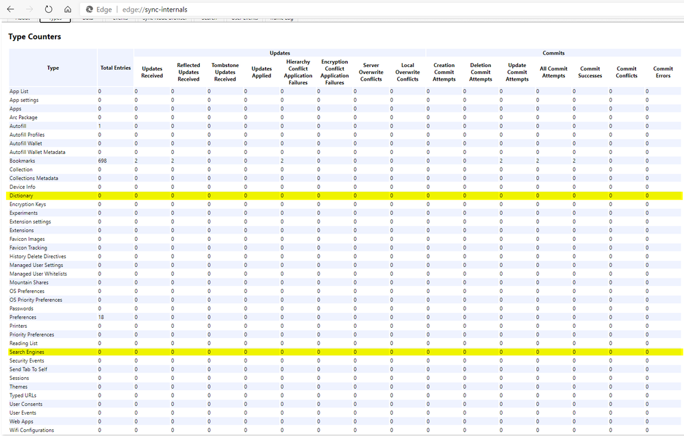 Just want to make sure: even Settings sync is 95% unfinished for everybody, right? I'm perpetually needing to add the same words back to the dictionary on each system. The same with search engines. I took a look at edge://sync-internals and nearly nothing at all is being synced.