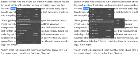 Add a resource that allows the user to choose more than one language for translation in the context menu. Above I put two design examples for this feature.