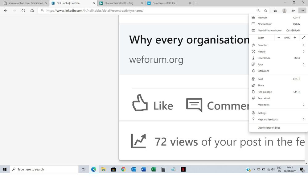 This is my screen following scrolling down with two fingers, as you can see Edge is saying this is 100% zoom... but it is clearly not.