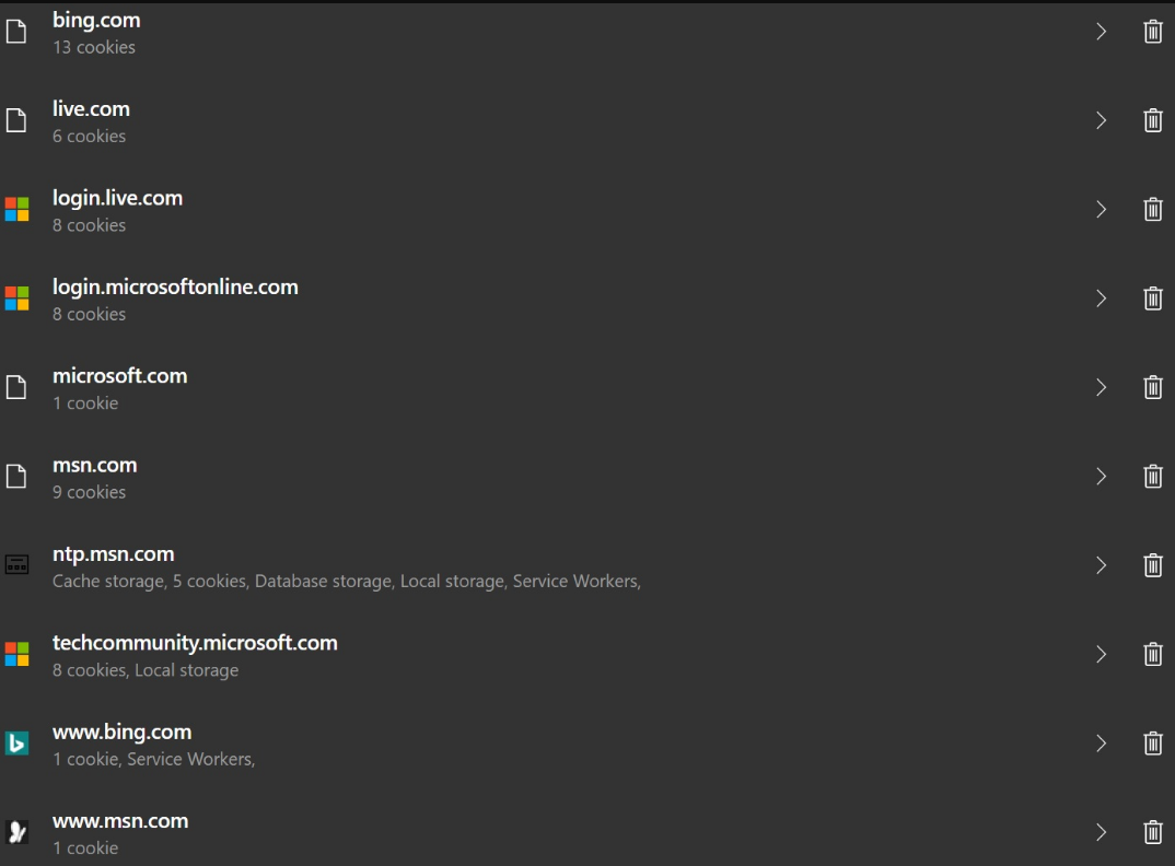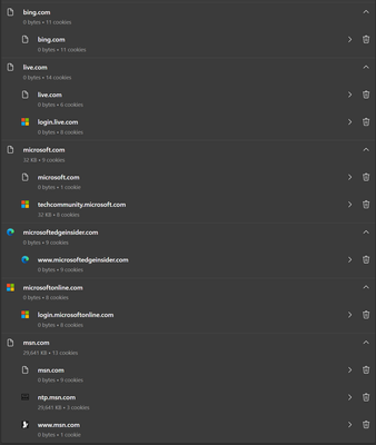 And on that subject, the header of edge://settings/content/cookies, "Cookies and data stored / Cookies and site data", is both redundant and inconsistent. You could use "Cookies and stored data" but not all data to which it applies is stored (e.g. session data). "Cookies and site data" is fine though you should make up your mind whether to use the term site or website as Edge uses both in its UI.