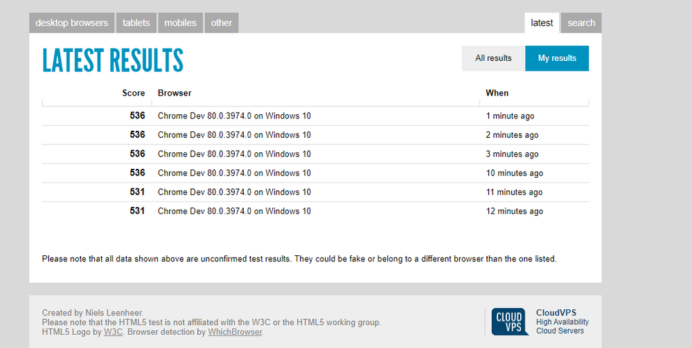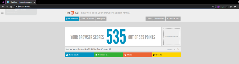 Very Impressive Edge insider Canary Results in HTML5 Test (Plus other browsers) Comparison