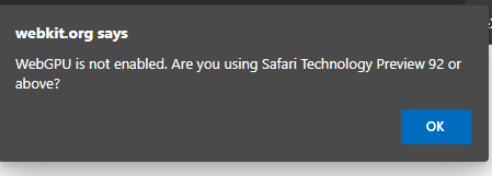 An example, a website that even doesn't work: https://webkit.org/demos/webgpu/babylon/oneHelmetWebGPU.html