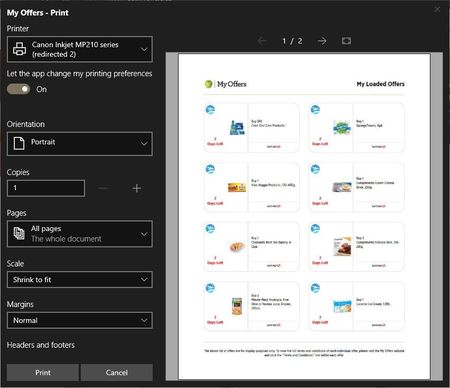 This prints correcting using IE, but, let's call that irrelevant. It has not been printing right w/ Edge; the values missing. I have been telling Safeway IT they needed to fix this. But, get a loa...