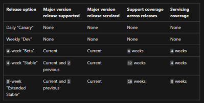 Then for the guidance on which versions of Edge get supported that was the second-link ( https://learn.microsoft.com/en-us/deployedge/microsoft-edge-support-lifecycle ) I sent you. Simply scroll-down the page, and refer to the table there: