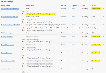 Bug: Windows 10 Pro Education: This policy is blocked - its value will be ignored