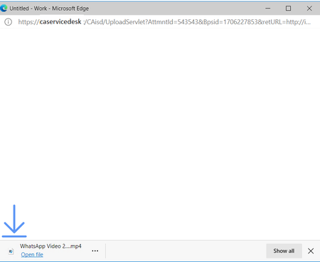 The thing with CA Servicedesk is, that its primary Edge window opens a secondary Edge window, and we click on an attachment there, and it opens this small download window as a third window. So the download drop down, that you show in a video, stays on the primary window. And the primary Edge window gets covered by the secondary window. In no way our CA ServiceDesk users can see that dropping down -- it's covered.