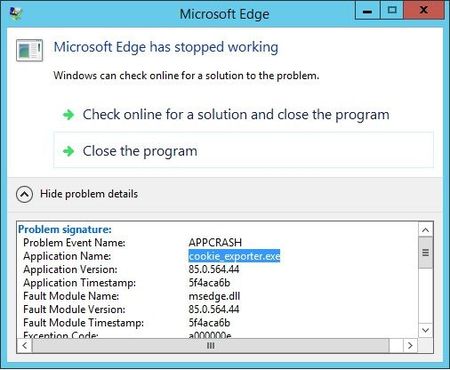 Edge stopped working - cookie_exporter.exe - Server 2012R2