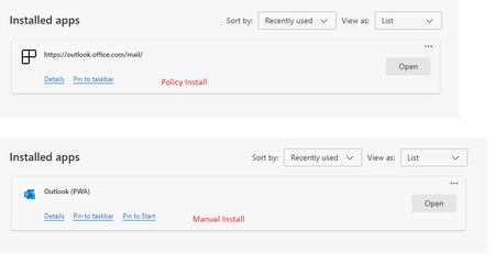 Hi, I am trying to deploy the Outlook PWA (office365) with the Edge group policy and am experiencing some strange behavior. I have attempted this with both a computer and user policy, and with a re...