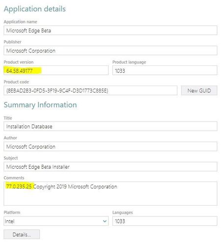 we want to automate checking the product version of the downloaded Msi file. So product Version property would be the right place. Not comments meta field.