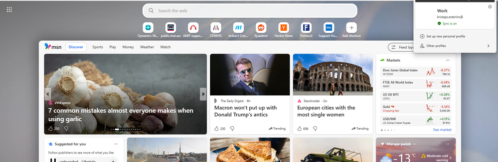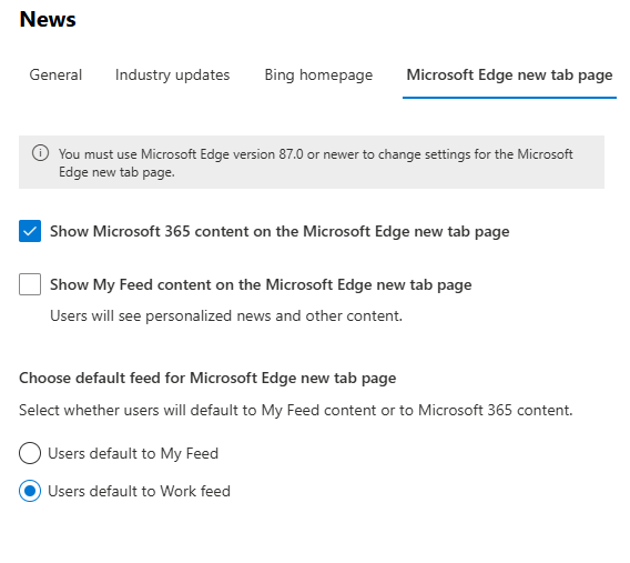 In Microsoft 365 Admin page we have set up the New Tab page to show work content, as of last week it shows Bing content instead of work-related (outlook, Sharepoint, ToDo) - Henno_KeersSteel Contributor