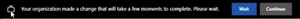 Suppress Banner "Your organization made a change that will take a few moments..."
