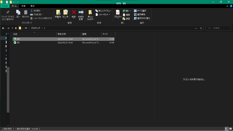 保存したファイルの種類(拡張子)によってエクスプローラーでプレビューができません。