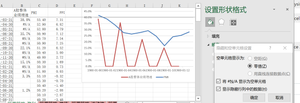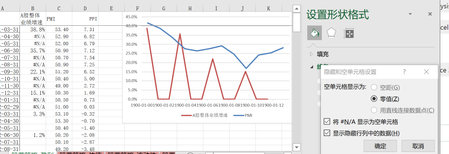 如何将两组不同时间频率的数据做在一张图里?想在一个坐标轴中做成两条折线图,如何做? 我尝试了一个做法,但遇到障碍,右边的空值和用直线连接数据点不可用,如何修改,修改后是否可以实现我想要的图。