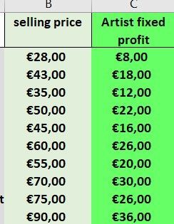 The prices and profit are based on production costs, shipping, tax, transaction fees of each item (column A). Which the client is aware of 🙂