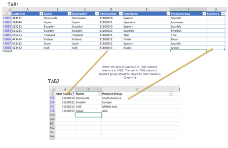 I have a spreadsheet with two tabs. One tab is the data tab which is filled with 7 columns and a few thousands rows. The other tab contains reference data where I want to get the data to fill in th...