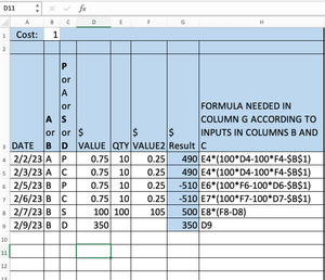 =SWITCH(B4,"A",E4*(100*D4-100*F4-B$1),"B",SWITCH(C4,"P",E4*(100*F4-100*D4-B$1),"C",E4*(100*F4-100*D4-B$1),"S",E4*(F4-D4),"D",D4,""),"")- jensor4Feb 11, 2023Copper Contributor