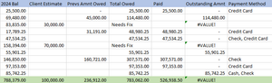 Hello, I'm trying to calculate "total owed" total owed = 2024 balance + "Prevs amnt owed UNLESS there is a "Client estimate" in which case total owed = Client estimate + "prevs amnt owed" see be...