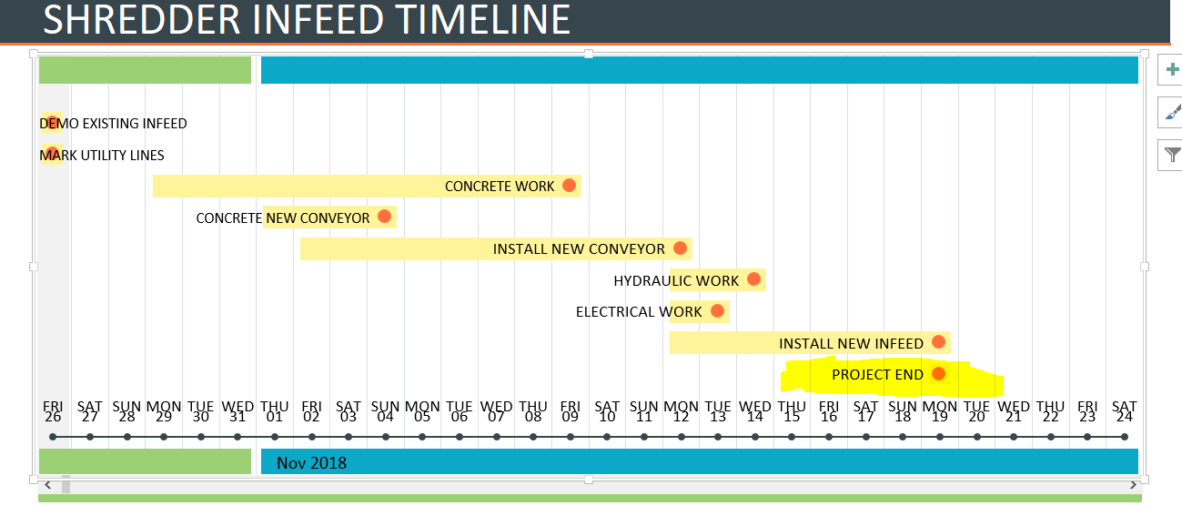 Adding data points to excel project timeline